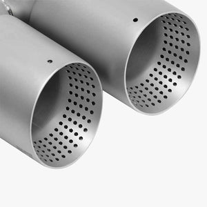 5. Installation:Professional installation is recommended. weld to stock or aftermarket mufflers,Please check you rear bumper/valance/diffuser for fitment, adjustments may be needed or replacement may be needed to fit wider style tips.Suitable for DIY.