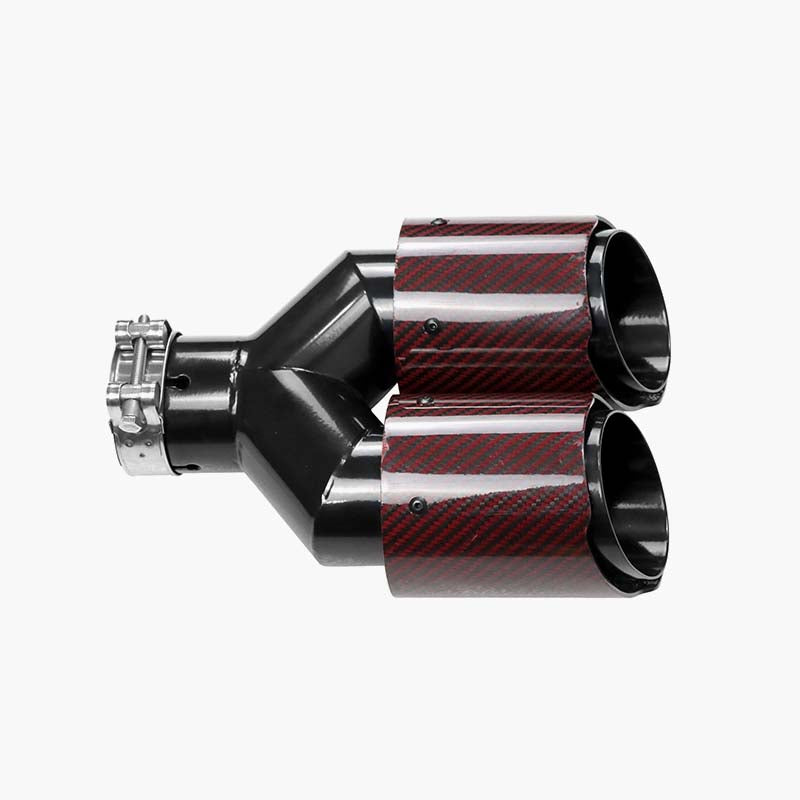 Red Carbon Double Outlet Exhaust tips Muffler nozzles for car Universal exhaust dual tips